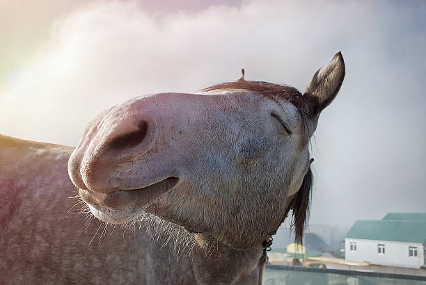 Smiling horse in sunlight. close up. -